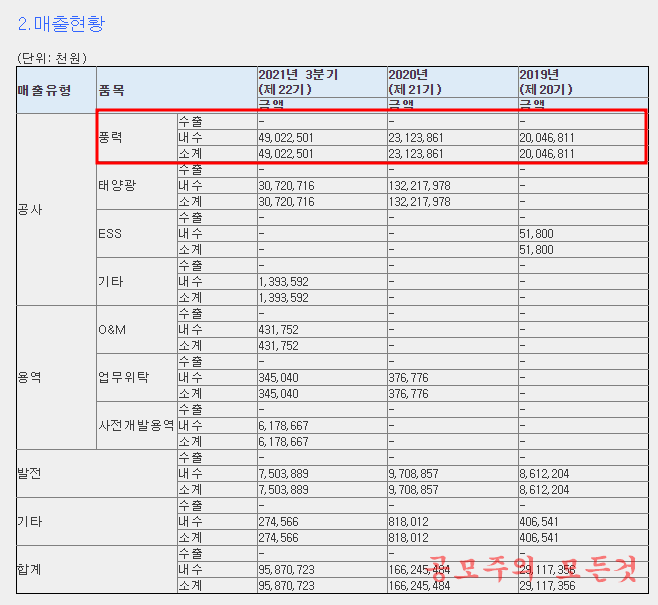 위에서 보다시피 대부분 풍력발전에서 매출이 발생하고 있습니다.
